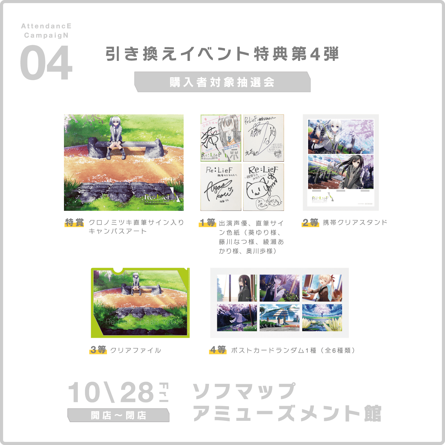 毎月の予約引き換えグッズの他に、早く予約する程チャンスが倍増する、 豪華グッズが当たる4ヶ月連続引き換えイベント、スタンプラリーキャンペーンが決定! 引き換えイベントに参加する度にスタンプを1個捺印! 最大4個溜まり、発売日イベントにてスタンプの捺印数と同じ回数くじが引けます!